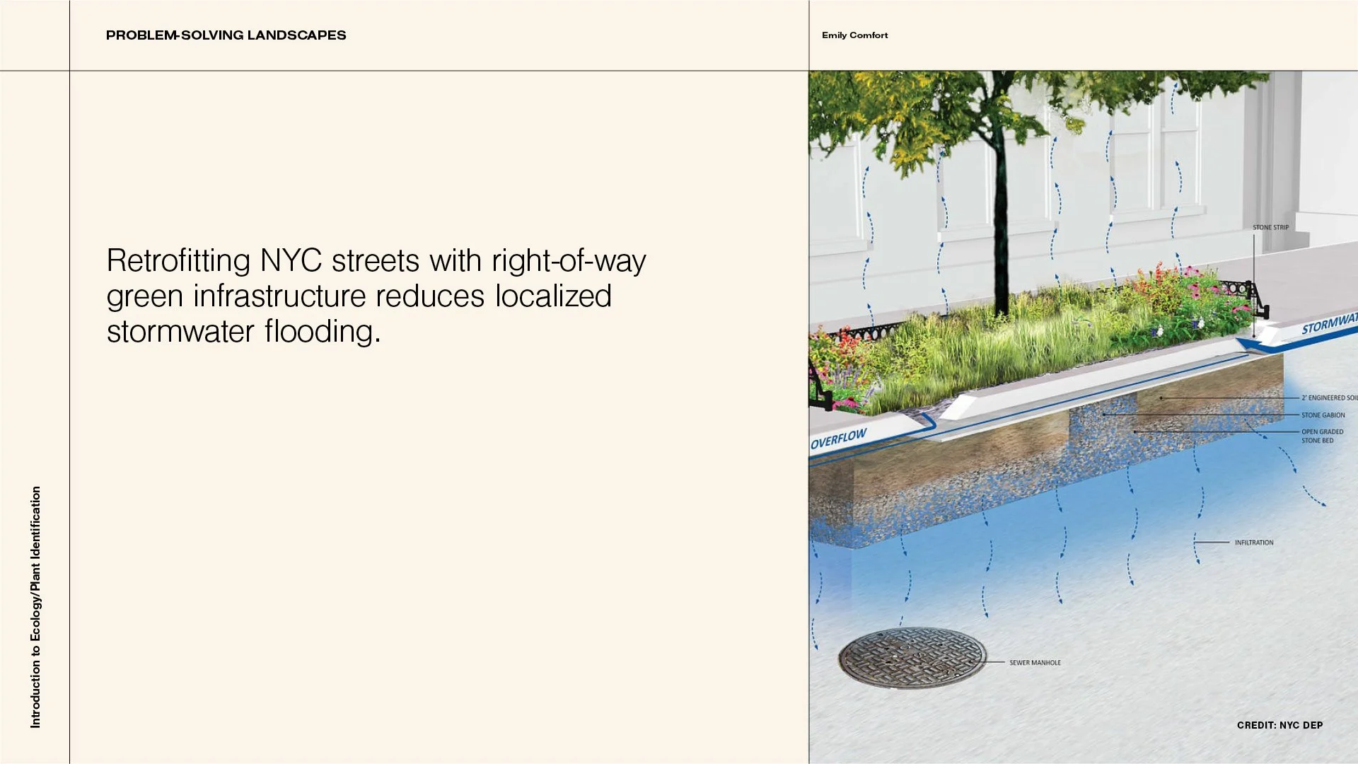 Using only plants covered in our Plant Identification class, create a presentation for a draft planting plan that would help address an environmental problem in New York City.
